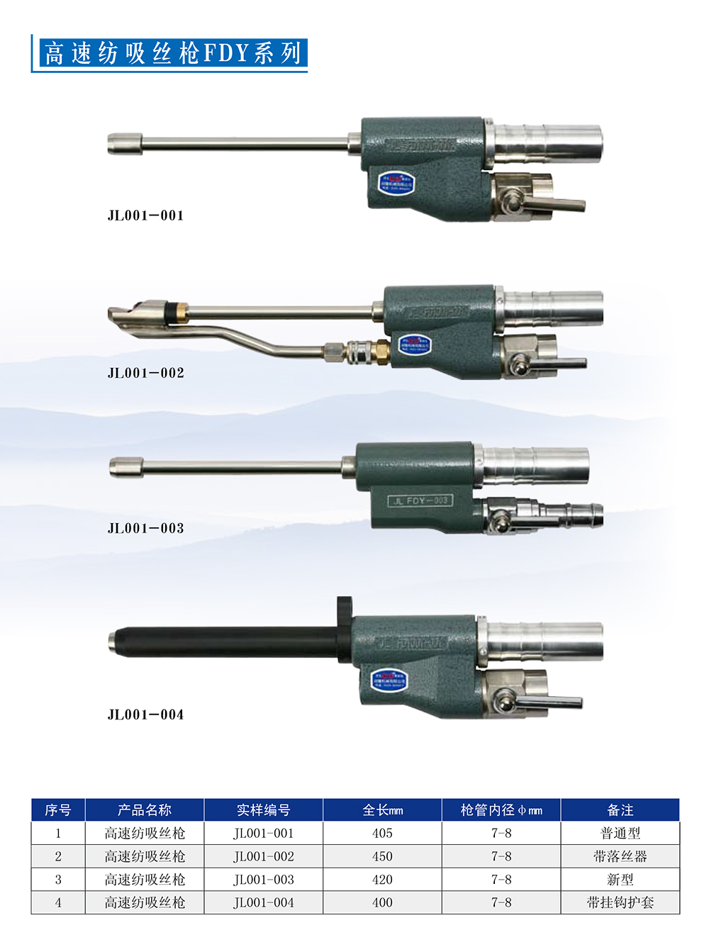 主營各種系列吸絲槍和各種規(guī)格快速插座、升絲拉桿為主。吸絲槍主要包括高速紡FDY、 POY、短絲槍、工業(yè)絲槍,包括紡DTY、加彈機系列。來圖來樣生產(chǎn)。
